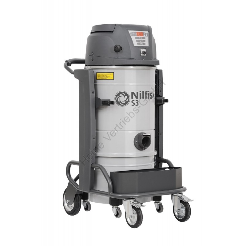 Diese Industriesauger eignen sich zur Aufnahme von festen und flüssigen Stoffen wie beispielsweise verschiedene Stäube auf Baustellen oder mit Metallspänen versetzte Kühl- und Schmiermittel in Produktionsmaschinen. Es stehen drei unterschiedliche Varianten zur Auswahl. Der S2 B mit 2 Motoren (2 kW) und 50 Liter Schmutzbehälter, sowie der S3 B mit 3 Motoren (3 kW) und 50 Liter bzw. 100 Liter Schmutzbehälter. Die Bypass-Motoren sind in einem Ganzmetallgehäuse eingebaut und lassen sich unabhängig voneinander schalten. Die Schmutzbehälter lassen sich bequem über eine Absetzmechnik entnehmen. Durch das sehr robuste Fahrwerk ist der Industriesauger leicht zu manövrieren. Die Industriesauger sind standardmäßig mit einem Sternfilter und einem manuellen Filterrüttler ausgestattet (Sternfilter mit Staubklasse „L“-Zulassung, FM-Variante mit Staubklasse „M“-Zulassung). Optional ist ein HEPA-Filtersatz und ein Aufnahmehalter für das Zubehör erhältlich.