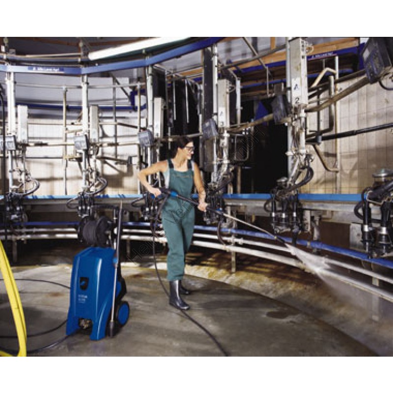 Modelle für Licht- und Starkstrom. Die neue Taumelscheibenpumpe mit Edelstahl-Kolben ist widerstandsfähig und ideal für den häufigen Einsatz. Der integrierte Reinigungsmittelinjektor und der Ansaugschlauch auf der Geräterückseite ermöglichen eine schnelle und leichte Anwendung des Reinigungsmittels. Der Drehknopf für die Reinigungsmitteldosierung ist an gleicher Stelle positioniert. Zwei Strahlrohrhalterungen ermöglichen die einfache Aufbewahrung von Zubehör.