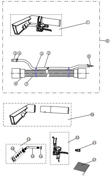 • 3 m Sprüh- und Saugschlauch mit 102-mm-Handdüse