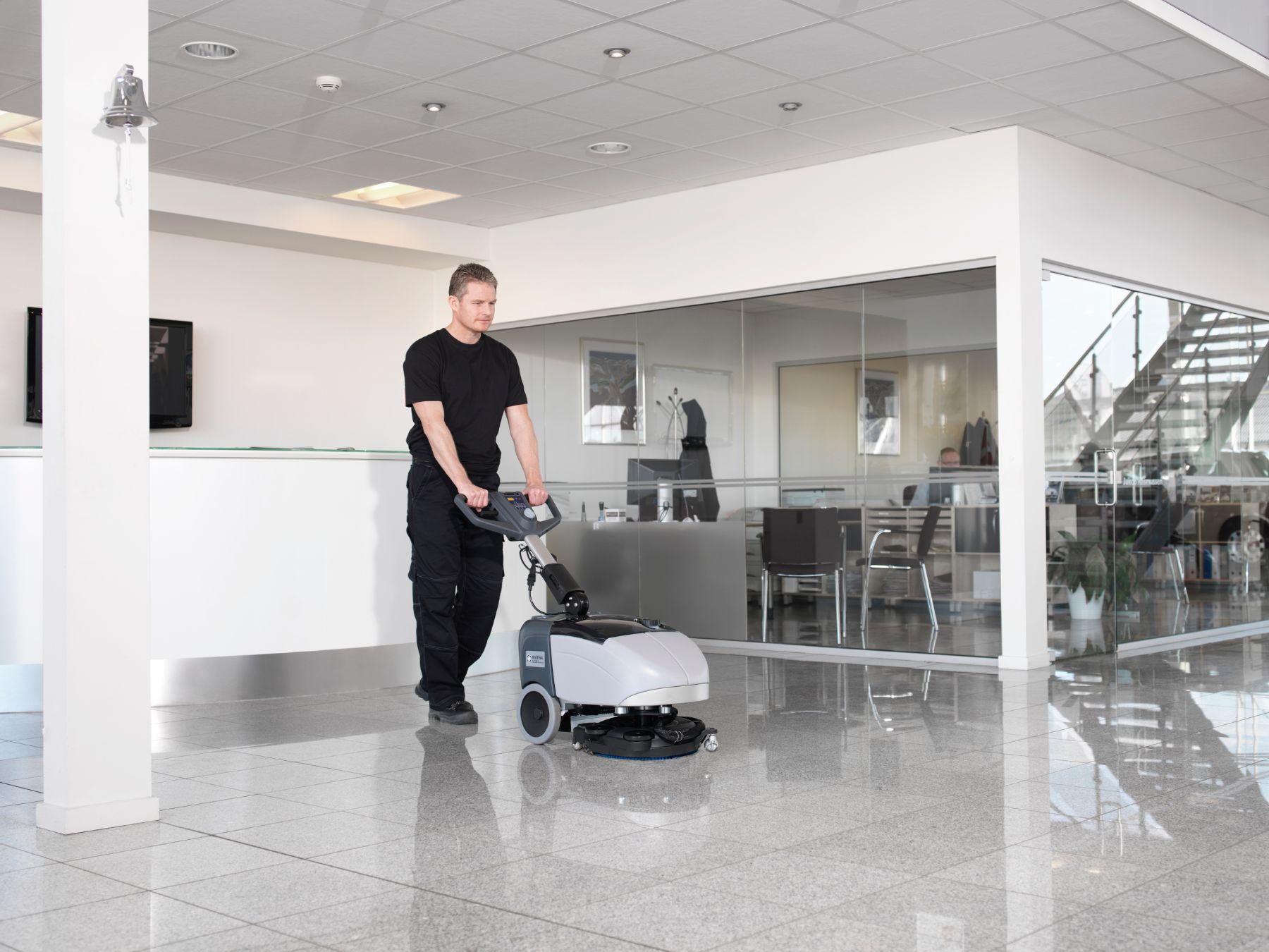 Die SC351 bietet einzigartige Leistung in einem kleinen und handlichen Gerät. Ersetzen Sie den Mopp, Einscheiben- oder schwere, teure Maschinen und erreichen bemerkenswerte Ergebnisse mit der Nilfisk SC351 :
